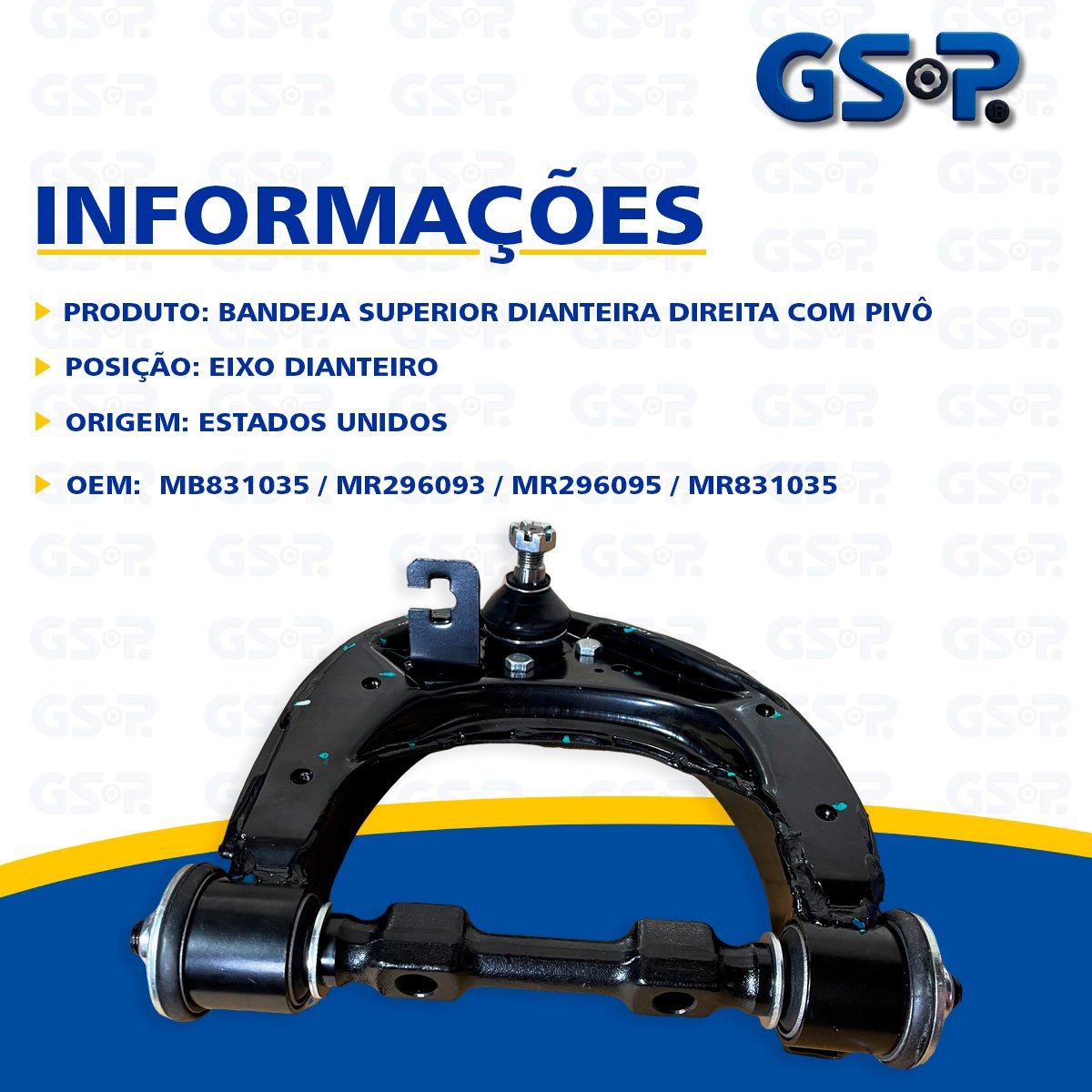 Descrição Bandeja Superior Dianteira Direita com Pivô Marca GSP Origem Estados Unidos OEM MB831035 / MR296093 / MR296095 / MR831035