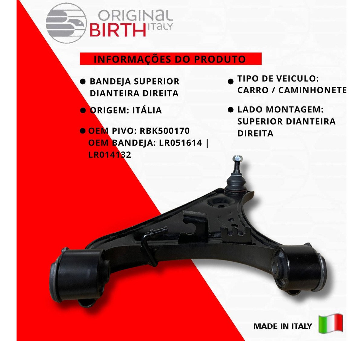 ORIGINAL BIRTH são peças de altíssima qualidade fabricada na Itália desde 1979, a ORIGINAL BIRTH é um líder de referência para o mercado com uma qualidade ampla de componentes para todos os modelos de automóveis em circulação. Nível extremo de confiabilidade, são 7,5 milhões de artigos vendidos todos os anos e com presença mundial em 65 países, nos 5 continentes! Somos distribuidor oficial do Brasil da Marca ORIGINAL BIRTH, Todas as peças são novas na caixa e com garantia. Escolha ORIGINAL BIRTH a qualidade vai te surpreender!