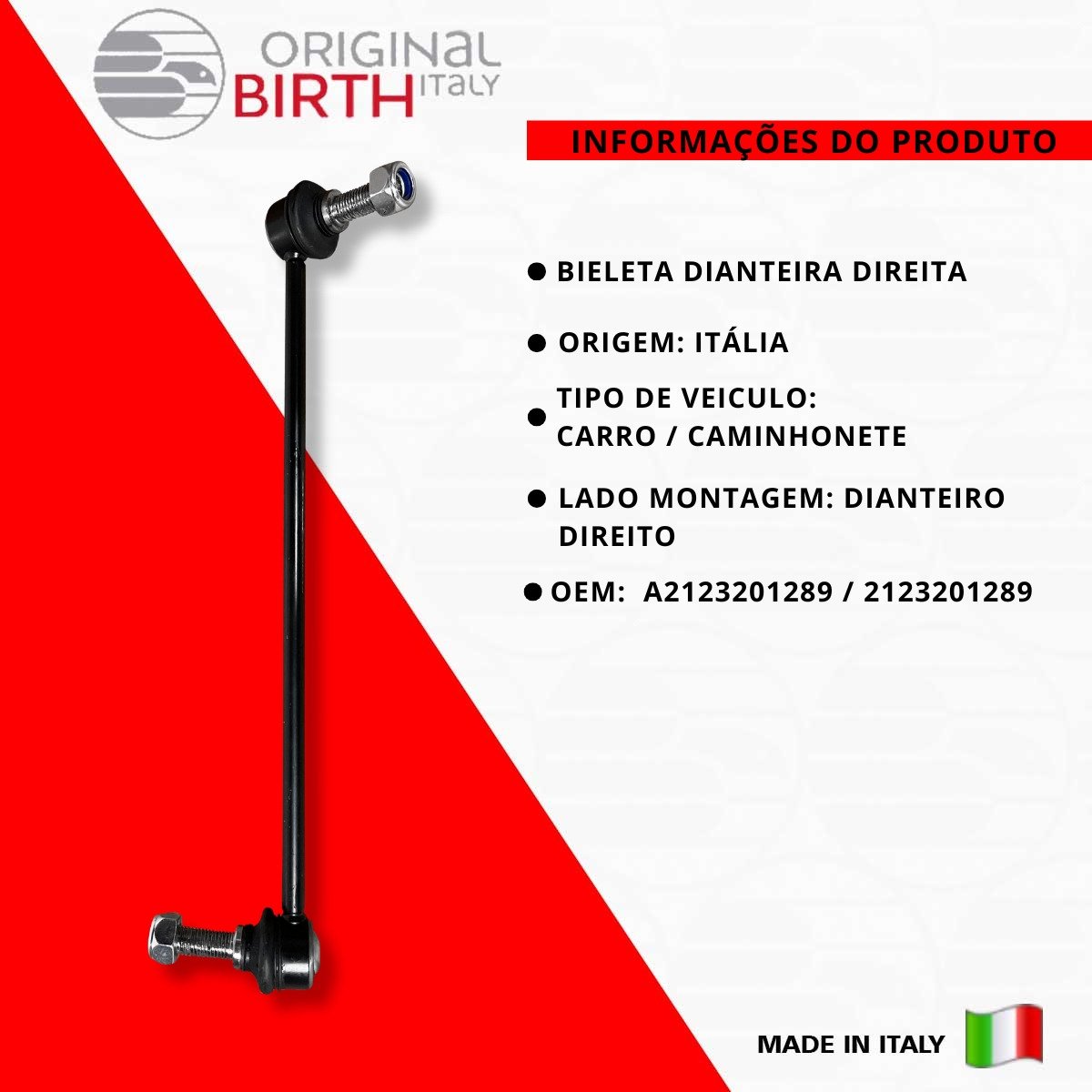 Descrição BIELETA DIANTEIRA DIREITA Detalhes do produto ORIGINAL BIRTH são peças de altíssima qualidade fabricada na Itália desde 1979, a ORIGINAL BIRTH é um líder de referência para o mercado com uma qualidade ampla de componentes para todos os modelos de automóveis em circulação. Nível extremo de confiabilidade, são 7,5 milhões de artigos vendidos todos os anos e com presença mundial em 65 países, nos 5 continentes! Somos distribuidor oficial do Brasil da Marca ORIGINAL BIRTH, Todas as peças são novas na caixa e com garantia. Escolha ORIGINAL BIRTH a qualidade vai te surpreender! INFORMAÇÕES COMPLEMENTARES BARRA DE DIREÇÃO/SUPORTE COMPRIMENTO 2324 MM PESO 430 G ROSCA EXTERNA 2 M 12X1,5 MM LADO DE MONTAGEM: EIXO DIANTEIRO DIREITO MATERIAL: AÇO Marca Birth Origem Italia OEM A2123201289 / 2123201289