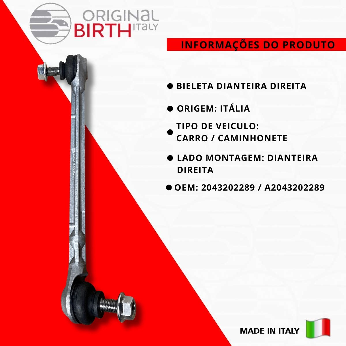 Descrição BIELETA DIANTEIRA DIREITA Detalhes do produto ORIGINAL BIRTH são peças de altíssima qualidade fabricada na Itália desde 1979, a ORIGINAL BIRTH é um líder de referência para o mercado com uma qualidade ampla de componentes para todos os modelos de automóveis em circulação. Nível extremo de confiabilidade, são 7,5 milhões de artigos vendidos todos os anos e com presença mundial em 65 países, nos 5 continentes! Somos distribuidor oficial do Brasil da Marca ORIGINAL BIRTH, Todas as peças são novas na caixa e com garantia. Escolha ORIGINAL BIRTH a qualidade vai te surpreender! INFORMAÇÕES COMPLEMENTARES CRITÉRIOS DO ITEM BARRA DE DIREÇÃO DA HASTE/SUPORTE COMPRIMENTO 2 290 MM ROSCA EXTERNA 1 M 12X1,5 MM ROSCA EXTERNA 2 M 12X1,5 MM LADO DE MONTAGEM: EIXO DIANTEIRO DIREITO MATERIAL: ALUMÍNIO Marca Birth Origem Italia OEM 2043202289 / A2043202289