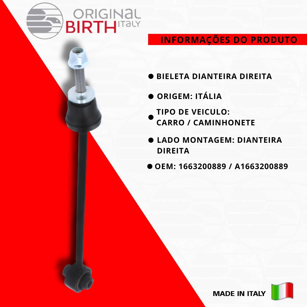 Descrição BIELETA DIANTEIRA DIREITA *** OBS ANTES DA COMPRA ENVIAR NUMERO DO CHASSIS *** Detalhes do produto ORIGINAL BIRTH são peças de altíssima qualidade fabricada na Itália desde 1979, a ORIGINAL BIRTH é um líder de referência para o mercado com uma qualidade ampla de componentes para todos os modelos de automóveis em circulação. Nível extremo de confiabilidade, são 7,5 milhões de artigos vendidos todos os anos e com presença mundial em 65 países, nos 5 continentes! Somos distribuidor oficial do Brasil da Marca ORIGINAL BIRTH, Todas as peças são novas na caixa e com garantia. Escolha ORIGINAL BIRTH a qualidade vai te surpreender! INFORMAÇÕES COMPLEMENTARES BARRA DE DIREÇÃO LARGURA 48 MM COMPRIMENTO 2360 MM ROSCA EXTERNA 2 M 12X1,5 MM LADO DE MONTAGEM: EIXO DIANTEIRO DIREITO DIÂMETRO INTERNO 12 MM MATERIAL: AÇO Marca Birth Origem Italia OEM 1663200889 / A1663200889