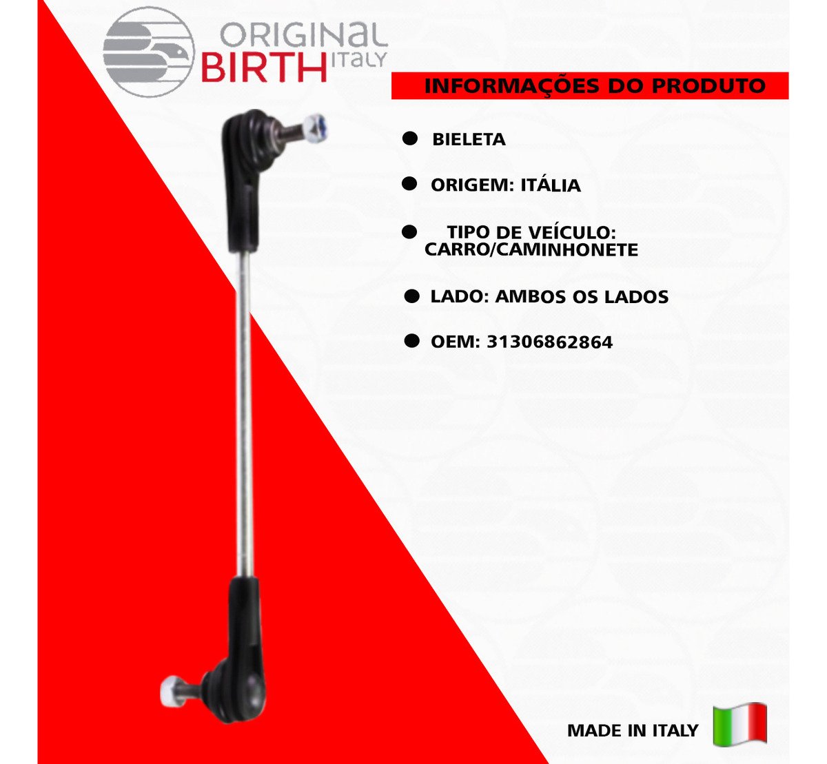 Descrição BIELETA DIANTEIRA OBS APLICA EM AMBOS OS LADOS (VALOR UNITARIO) Marca Birth Origem Italia OEM 31306862864