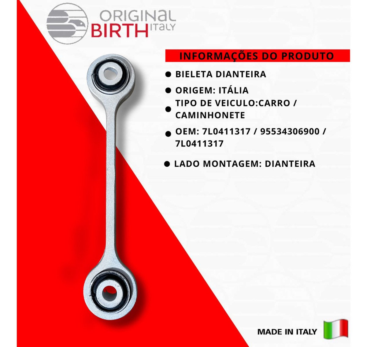 ORIGINAL BIRTH são peças de altíssima qualidade fabricada na Itália desde 1979, a ORIGINAL BIRTH é um líder de referência para o mercado com uma qualidade ampla de componentes para todos os modelos de automóveis em circulação. Nível extremo de confiabilidade, são 7,5 milhões de artigos vendidos todos os anos e com presença mundial em 65 países, nos 5 continentes! Somos distribuidor oficial do Brasil da Marca ORIGINAL BIRTH, Todas as peças são novas na caixa e com garantia. Escolha ORIGINAL BIRTH a qualidade vai te surpreender!