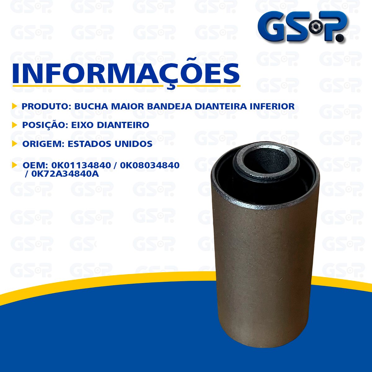 Descrição Bucha da Bandeja Marca GSP Origem Estados Unidos OEM 0K01134840 / 0K08034840 / 0K72A34840A