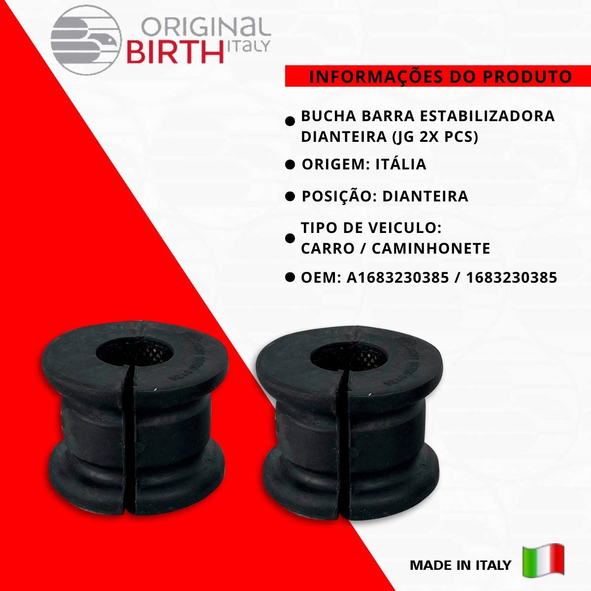 Descrição BUCHA BARRA ESTABILIZADORA DIANTEIRA (JG 2X PCS) Marca Birth INFORMAÇÕES COMPLEMENTARES LADO DE MONTAGEM: EIXO DIANTEIRO DIÂMETRO INTERNO: 20 MM ÍNDICE DE DUREZA SHORE-A DO CORPO PRINCIPAL: 70 Detalhes do produto ORIGINAL BIRTH são peças de altíssima qualidade fabricada na Itália desde 1979, a ORIGINAL BIRTH é um líder de referência para o mercado com uma qualidade ampla de componentes para todos os modelos de automóveis em circulação. Nível extremo de confiabilidade, são 7,5 milhões de artigos vendidos todos os anos e com presença mundial em 65 países, nos 5 continentes! Somos distribuidor oficial do Brasil da Marca ORIGINAL BIRTH, Todas as peças são novas na caixa e com garantia. Escolha ORIGINAL BIRTH a qualidade vai te surpreender! Origem Italia OEM A1683230385 / 1683230385