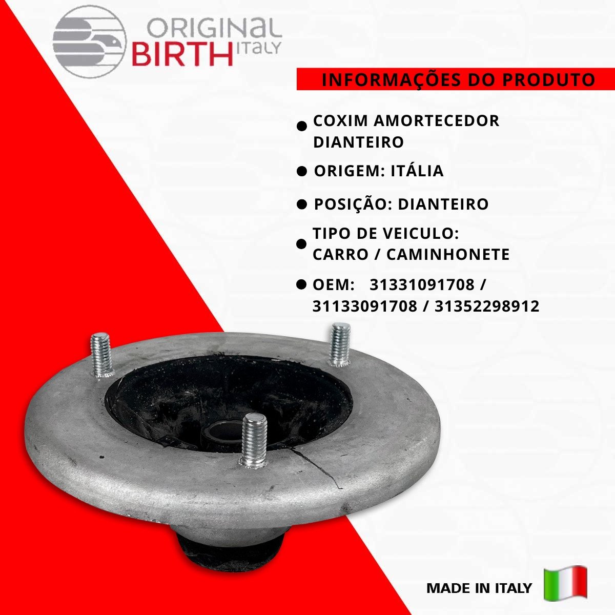 Descrição COXIM AMORTECEDOR DIANTEIRO Marca Birth INFORMAÇÕES COMPLEMENTARES ROSCA EXTERNA: 2 M 8 X 1,25 MM LADO DE MONTAGEM: EIXO DIANTEIRO DIREITO DIÂMETRO INTERNO: 16 MM Detalhes do produto ORIGINAL BIRTH são peças de altíssima qualidade fabricada na Itália desde 1979, a ORIGINAL BIRTH é um líder de referência para o mercado com uma qualidade ampla de componentes para todos os modelos de automóveis em circulação. Nível extremo de confiabilidade, são 7,5 milhões de artigos vendidos todos os anos e com presença mundial em 65 países, nos 5 continentes! Somos distribuidor oficial do Brasil da Marca ORIGINAL BIRTH, Todas as peças são novas na caixa e com garantia. Escolha ORIGINAL BIRTH a qualidade vai te surpreender! Origem Italia OEM 31331091708 / 31133091708 / 31352298912