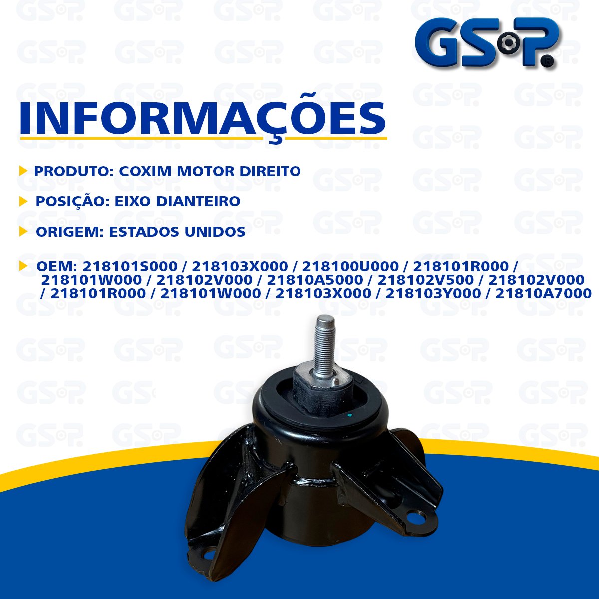 Descrição Coxim do Motor Lado Direito Marca GSP Origem Estado Unidos OEM 218101S000 / 218103X000 / 218100U000 / 218101R000 / 218101W000 / 218102V000 / 21810A5000 / 218102V500 / 218102V000 / 218101R000 / 218101W000 / 218103X000 / 218103Y000 / 21810A7000 OBS Coxim Hidráulico