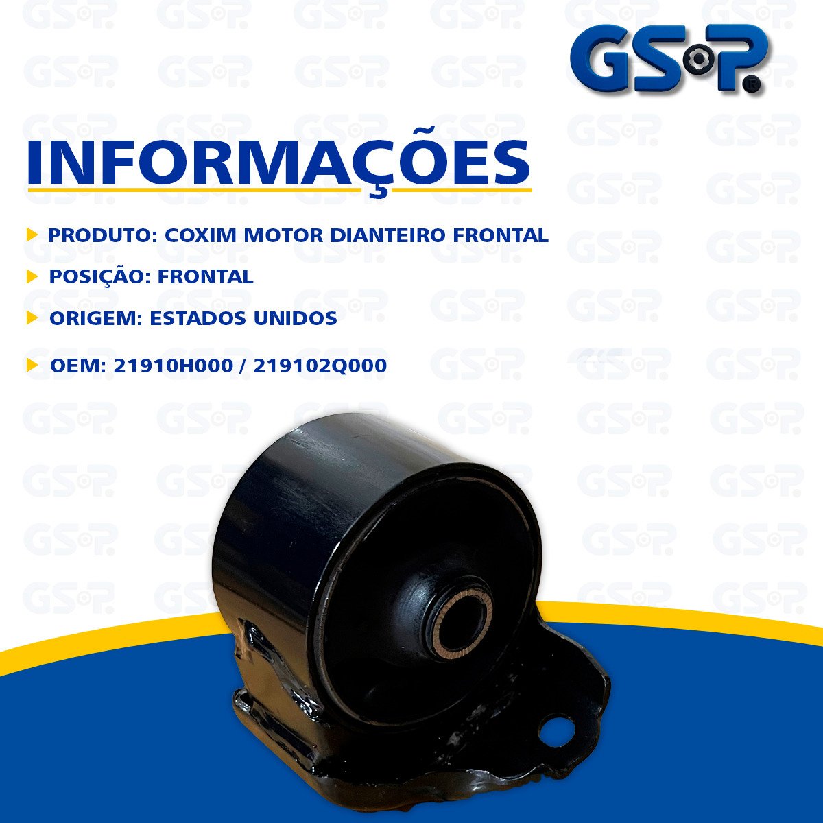 Descrição Coxim Frontal Motor Marca GSP Origem Estados Unidos OEM 21910H000 / 219102Q000