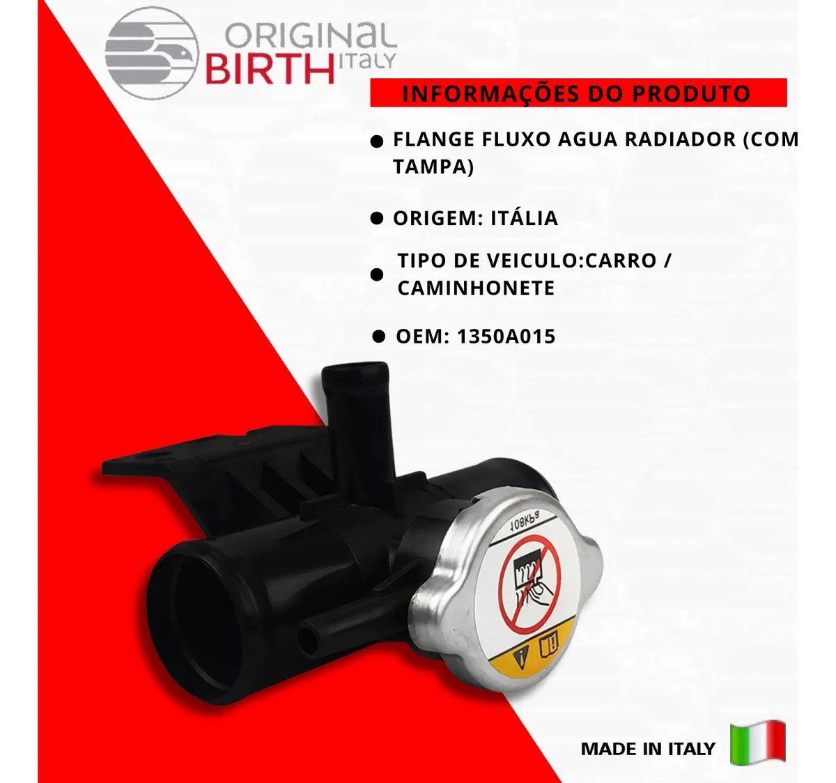 Descrição FLANGE DE AGUA RADIADOR Marca ORIGINAL BIRTH Origem ITÁLIA OEM 1350A015 OBS ALOJAMENTO DA TAMPA / ACOMPANHA TAMPA Detalhes do produto ORIGINAL BIRTH são peças de altíssima qualidade fabricada na Itália desde 1979, a ORIGINAL BIRTH é um líder de referência para o mercado com uma qualidade ampla de componentes para todos os modelos de automóveis em circulação. Nível extremo de confiabilidade, são 7,5 milhões de artigos vendidos todos os anos e com presença mundial em 65 países, nos 5 continentes! Somos distribuidor oficial do Brasil da Marca ORIGINAL BIRTH, Todas as peças são novas na caixa e com garantia. Escolha ORIGINAL BIRTH a qualidade vai te surpreender!
