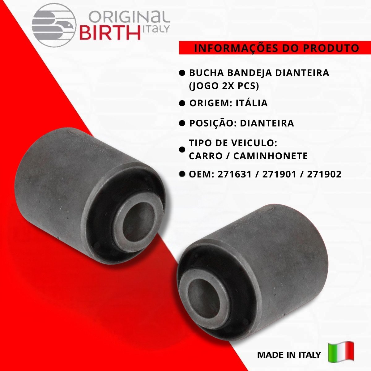 Descrição BUCHA BANDEJA DIANTEIRA (JOGO 2X PCS) Marca Birth INFORMAÇÕES COMPLEMENTARES Eixo dianteiro Diâmetro interno: 12 mm Detalhes do produto ORIGINAL BIRTH são peças de altíssima qualidade fabricada na Itália desde 1979, a ORIGINAL BIRTH é um líder de referência para o mercado com uma qualidade ampla de componentes para todos os modelos de automóveis em circulação. Nível extremo de confiabilidade, são 7,5 milhões de artigos vendidos todos os anos e com presença mundial em 65 países, nos 5 continentes! Somos distribuidor oficial do Brasil da Marca ORIGINAL BIRTH, Todas as peças são novas na caixa e com garantia. Escolha ORIGINAL BIRTH a qualidade vai te surpreender! Origem Italia OEM 271631 / 271901 / 271902