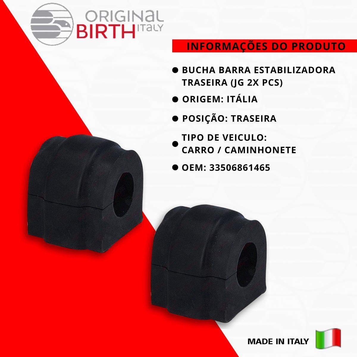 Descrição BUCHA BARRA ESTABILIZADORA TRASEIRA (JG 2X PCS) OBS FURO 21MM Marca Birth INFORMAÇÕES COMPLEMENTARES LADO DE MONTAGEM: EIXO TRASEIRO Diâmetro interno: 21 mm ÍNDICE DE DUREZA SHORE-A, CORPO PRINCIPAL: 75 Detalhes do produto ORIGINAL BIRTH são peças de altíssima qualidade fabricada na Itália desde 1979, a ORIGINAL BIRTH é um líder de referência para o mercado com uma qualidade ampla de componentes para todos os modelos de automóveis em circulação. Nível extremo de confiabilidade, são 7,5 milhões de artigos vendidos todos os anos e com presença mundial em 65 países, nos 5 continentes! Somos distribuidor oficial do Brasil da Marca ORIGINAL BIRTH, Todas as peças são novas na caixa e com garantia. Escolha ORIGINAL BIRTH a qualidade vai te surpreender! Origem Italia OEM 33506861465