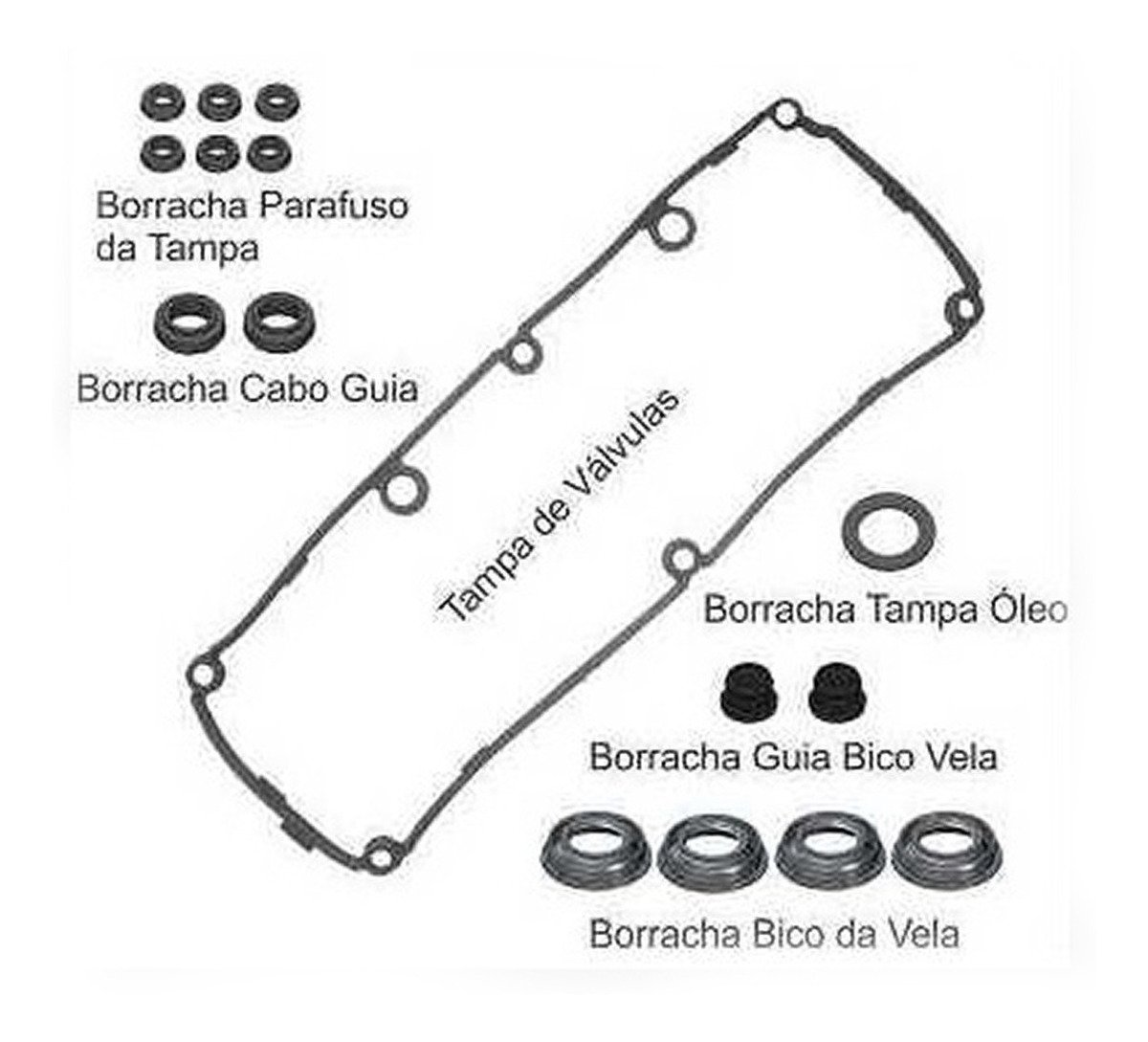 Descrição | JUNTA DE TAMPA DE VÁLVULA COM VEDADORES - 16 PEÇAS |