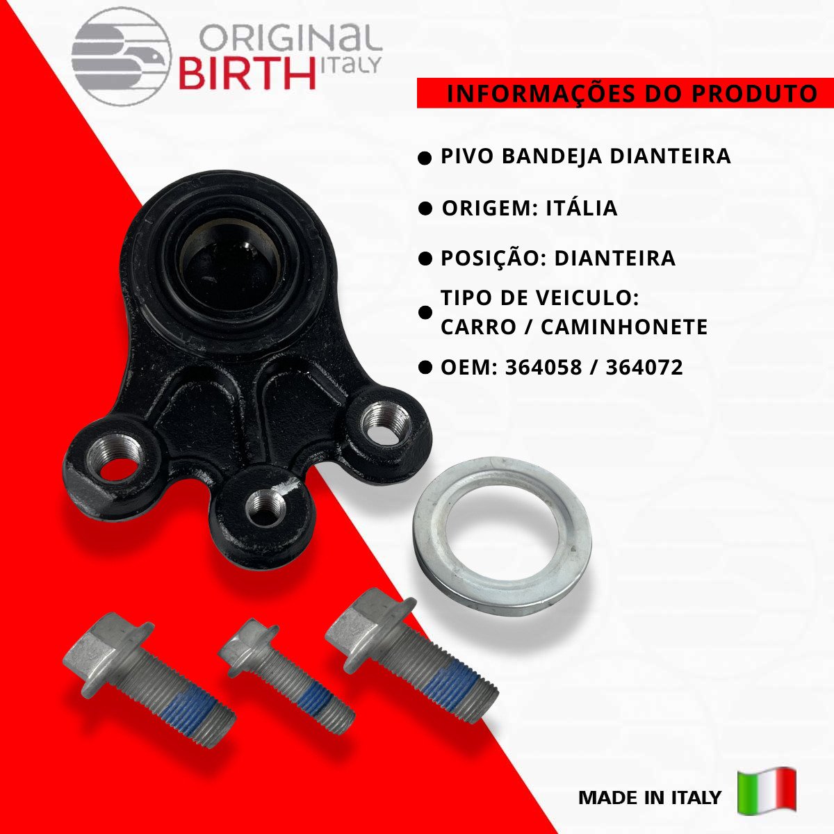 ORIGINAL BIRTH são peças de altíssima qualidade fabricada na Itália desde 1979, a ORIGINAL BIRTH é um líder de referência para o mercado com uma qualidade ampla de componentes para todos os modelos de automóveis em circulação. Nível extremo de confiabilidade, são 7,5 milhões de artigos vendidos todos os anos e com presença mundial em 65 países, nos 5 continentes! Somos distribuidor oficial do Brasil da Marca ORIGINAL BIRTH, Todas as peças são novas na caixa e com garantia. Escolha ORIGINAL BIRTH a qualidade vai te surpreender!
