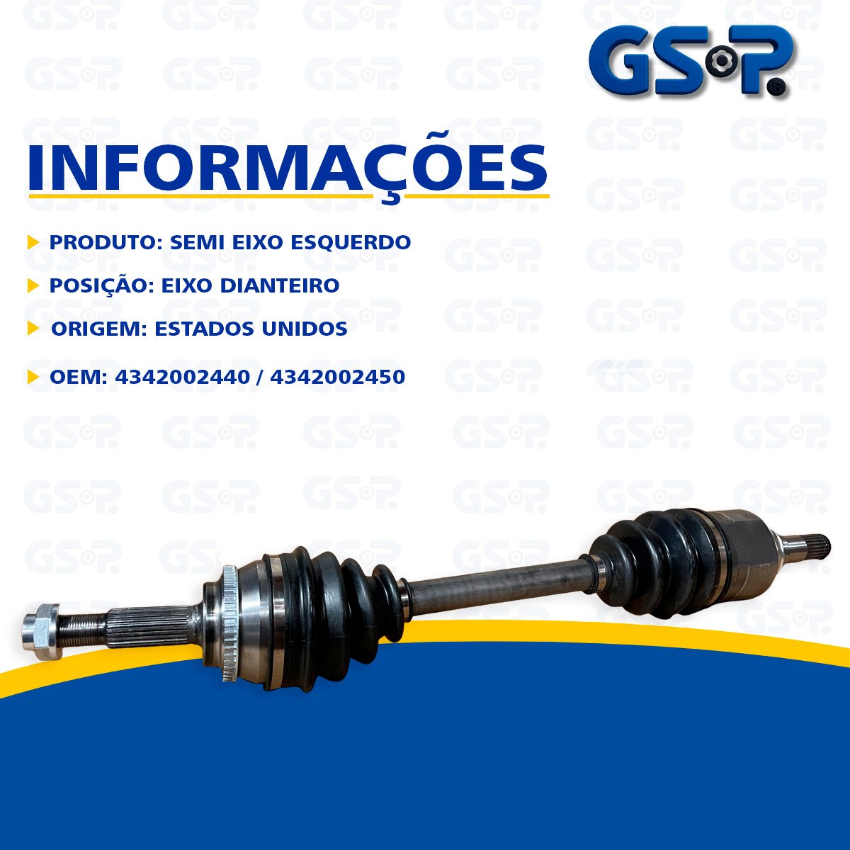 Descrição A GSP é uma das principais fabricantes de peças automotivas para o mercado de reposição mundial. Desde 1985, a empresa se destaca na produção de juntas de velocidade constante, eixos de acionamento, conjuntos de cubos, peças de borracha para metal, além de componentes de direção e suspensão. Com mais de 35 anos de experiência no setor automotivo, a GSP possui centros de distribuição estrategicamente localizados na América do Norte e na Alemanha, garantindo qualidade e eficiência no atendimento ao mercado global. Escolha GSP e surpreenda-se com a qualidade! Marca GSP Origem Estados Unidos OEM 4342002440 / 4342002450 OBS APENAS PARA VEÍCULOS AUTOMÁTICOS / 26 DENTES EXTERNOS / 23 DENTES INTERNOS / 638MM
